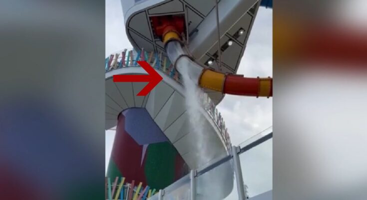 A broken panel on a water slide aboard Royal Caribbean’s Icon of the Seas caused water to spill down while passengers screamed in panic. An adult guest was injured when acrylic glass broke off the slide and is receiving medical treatment. The water slide has been closed for the rest of the cruise pending an investigation. (Credit: Jim Muldoon via Storyful)